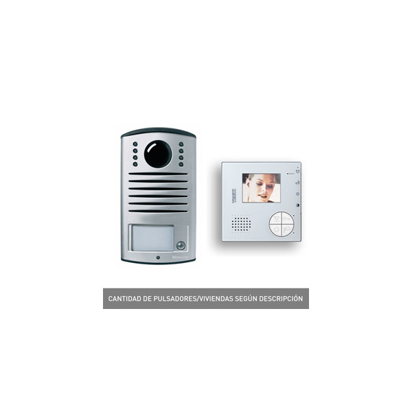 Kit vídeo 2 hilos compuesto por 1 monitor CLASSE 100V12B manos libres en color y placa de calle LÍNEA 2000 en acabado aluminio. Instalación de la placa de calle en superficie. Ampliables hasta 5 puestos internos audio o vídeo sin intercomunicación. 1 vivienda.